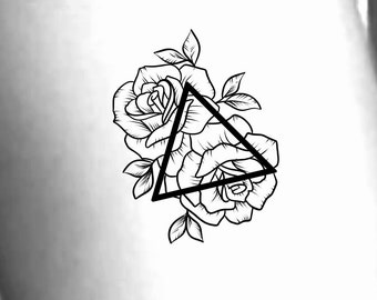 Triangle Roses Temporary Tattoo Floral Tattoo Geometric Etsy